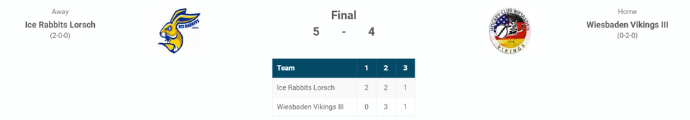As play resumed in the third period you could feel the frustration continuing to build for the Rabbits, earning them 3 penalties in the first 9 minutes.  This led to the tying goal at 6:06 by Robert Wojcik (assist Morgan Evans) after a gritty battle in front of the Rabbits’ net.  The home crowd that made the short trip to Mainz could be heard loud and clear as high hopes filled the arena.  Alas, less than 2 minutes later the Ice Rabbits would score to take the lead 5 to 4 with just over 7 minutes remaining.  Bodies would be flying all over the ice for the remainder of the game placing increasing pressure on the Rabbit defense.  This pressure coupled with the increasing frustration finally resulted in a game misconduct and ejection of a Rabbit player with just over a minute left to play in the period.  But despite this pressure and a valiant effort the final horn sounded with the Vikings coming up just short.